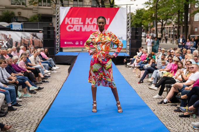 Am 6. Juli lockte die Innenstadt Modefans und Fashionistas an und auf den Laufsteg. Mitten auf dem Asmus-Bremer-Platz präsentierten Kiel-Marketing und FAEX mehrere Shows von lokalen Modeunternehmen, aber auch internationalen Designer*innen aus dem Slow Fashion-Bereich.
